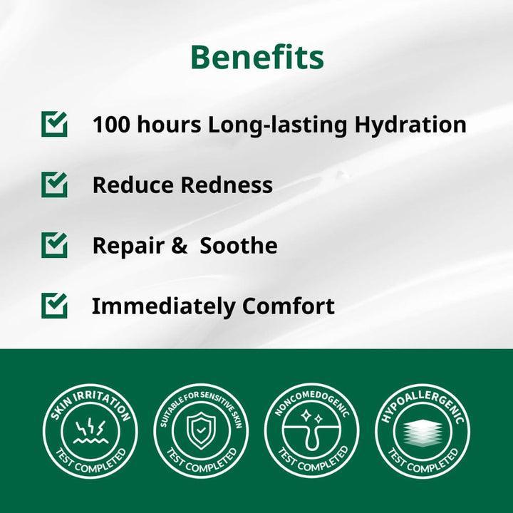 A hydrating cream formulated with naturally derived ingredients, including a 5-Cica Complex (madecassoside, madecassic acid, asiaticoside, asiatic acid, and Centella Asiatica extract). The lightweight gel texture absorbs quickly, leaving the skin feeling soft and refreshed. Designed for daily cosmetic use to support skin hydration.