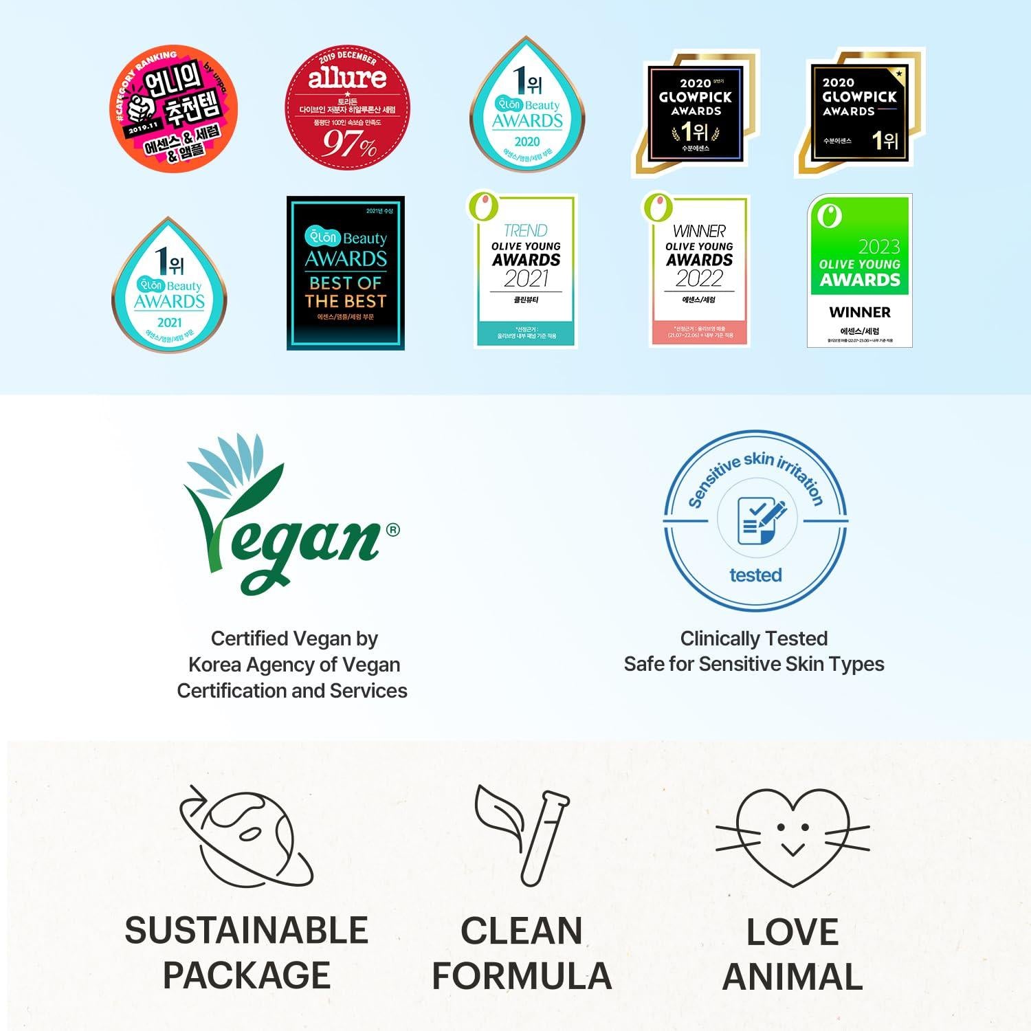 Purified Water, Butylene Glycol, Glycerin, Dipropylene Glycol, 1,2-Hexanediol, Panthenol, Sodium Hyaluronate, Hydrolyzed Hyaluronic Acid (500 ppm), Sodium Acetylated Hyaluronate, Sodium Hyaluronate Crosspolymer, Hydrolyzed Sodium Hyaluronate, Allantoin, Trehalose, Betaine, Propanediol, Portulaca Oleracea Extract, Hamamelis virginiana (witch hazel) extract, Madecassoside, Madecassic Acid, Ceramide NP, Beta-Glucan, Malachite Extract, Cholesterol, Pentylene Glycol, Glyceryl Acrylate/Acrylic Acid Copolymer, PVM/MA Copolymer, Polyglyceryl-10 Laurate, Xanthan Gum, Tromethamine, Carbomer, Ethylhexylglycerin, Scutellaria Baicalensis Root Extract, Paeonia Suffruticosa Root Extract